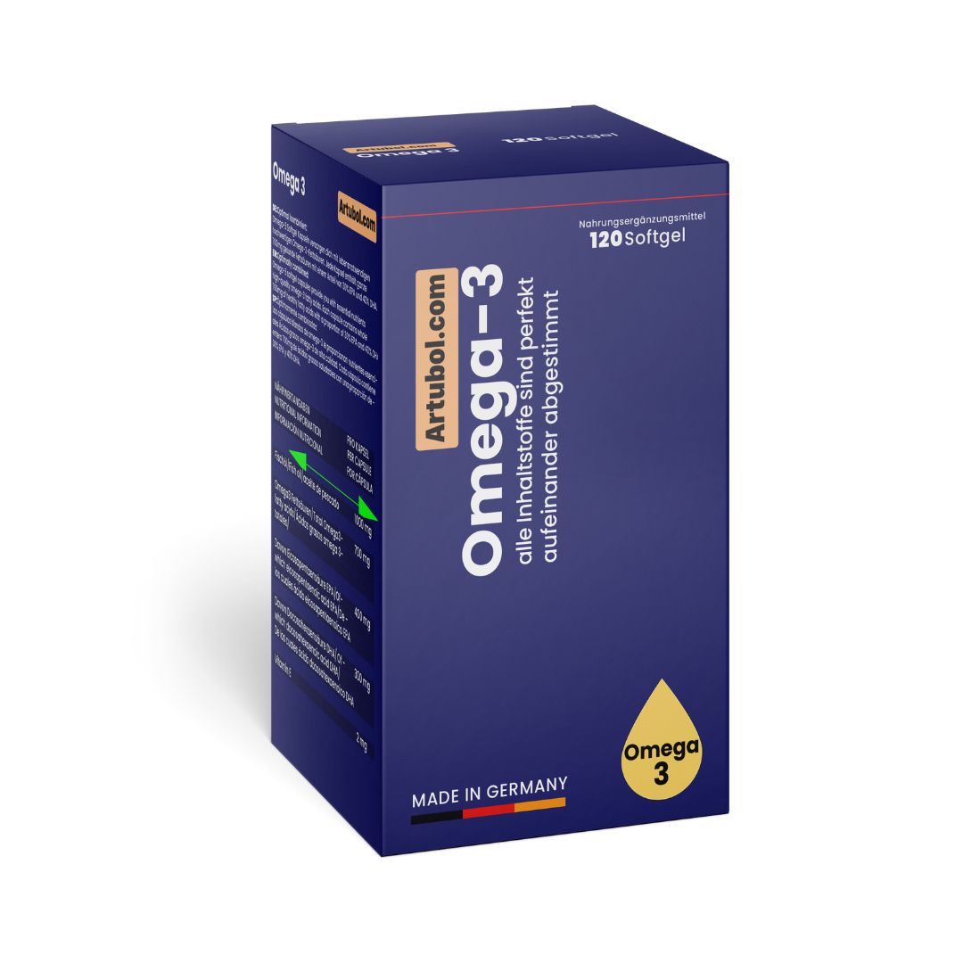 ARTUBOL Omega-3 bietet eine hochwertige Quelle essentieller Omega-3-Fettsäuren, die für die Gesundheit von Herz, Gehirn und Augen von entscheidender Bedeutung sind. Diese Softgel-Kapseln sind mit hochkonzentriertem Fischöl gefüllt und liefern eine optimale Dosierung von Eicosapentaensäure (EPA) und Docosahexaensäure (DHA) – den beiden wichtigsten Omega-3-Fettsäuren.